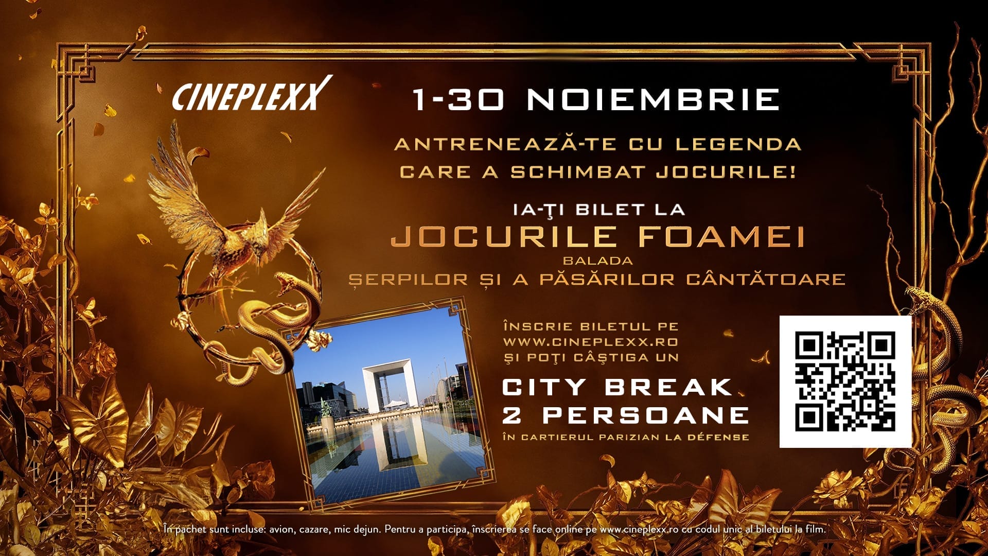 Cei mai nerăbdători fani sunt invitați să achiziționeze bilete la filmul „Jocurile Foamei: Balada șerpilor și a păsărilor cântătoare„, valabile la oricare dintre cinematografele Cineplexx – Băneasa, Titan, Sibiu, Satu-Mare și Târgu-Mureș – și să se înscrie apoi pe site-ul cineplexx.ro la campania care îi poate trimite direct în unul dintre cele mai moderne și vibrante cartiere din Paris.