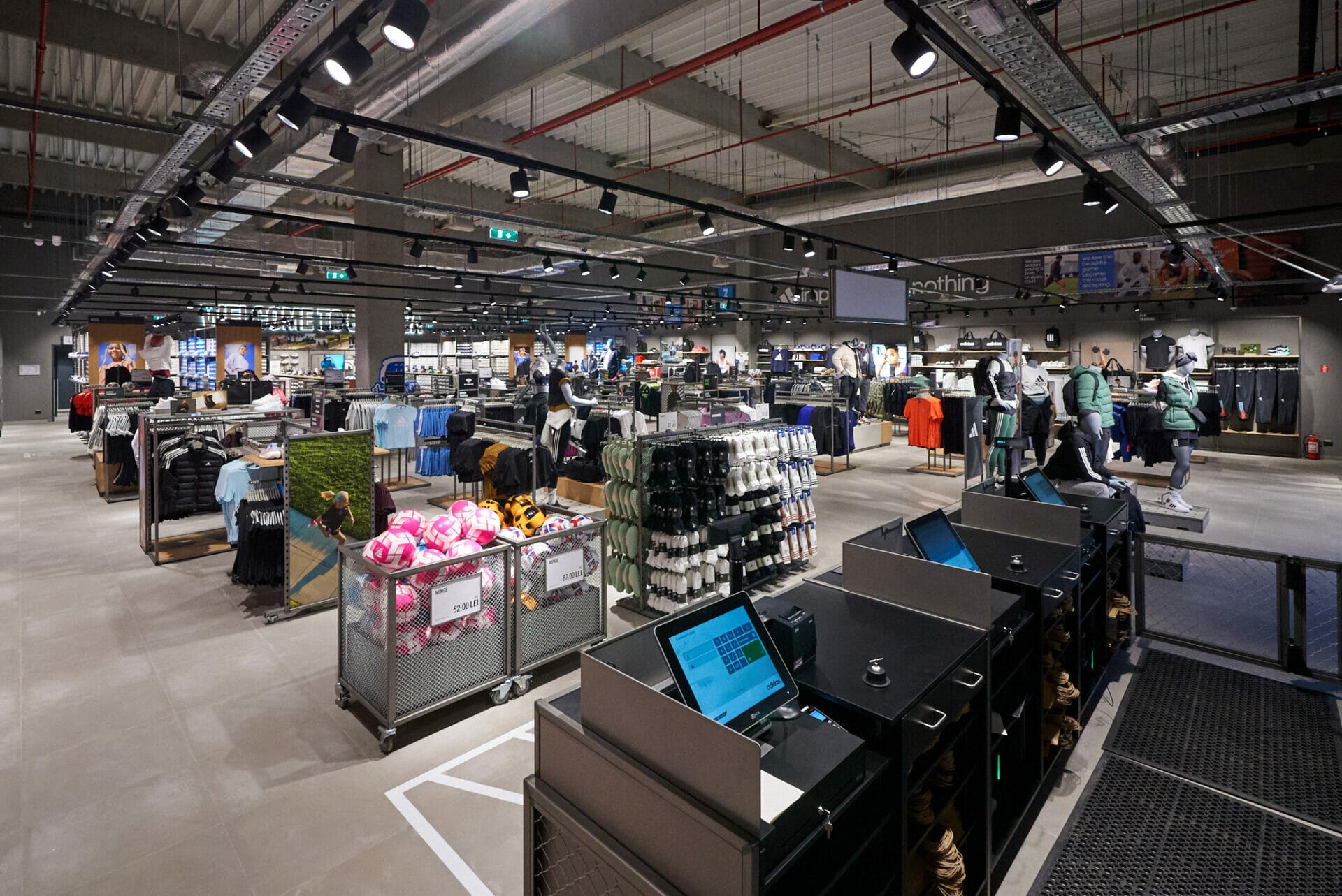 Decorul noului magazin este unul avangardist, inspirat din designul arenelor sportive, iar spațiul îmbină artistic structurile dure și reci cu accentele de culori calde și elemente de inspirație locală.