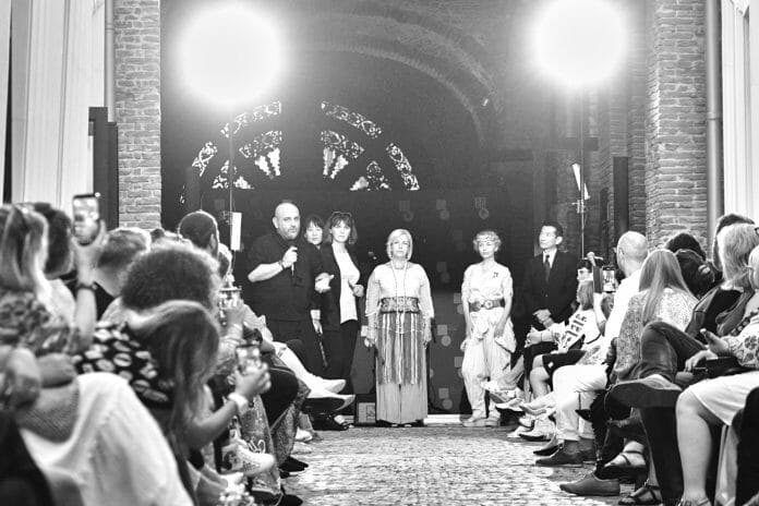 Inaugurată în urmă cu o lună la ARCUB, expoziția „Chimonoul întâlnește ia” curatoriată de Iulia Gorneanu a avut parte de un finisaj special în seara zilei de miercuri, 21 iulie, în pasajul Hanului Gabroveni. Fashion styling show-ul – sub direcția artistică a lui Alin Gălățescu – s-a desfășurat în prezența Ambasadorului Japoniei în România, ES Dl Hiroshi Ueda și a prezentat ținute ale designerilor români în ritmuri de muzică live interpretată de Jezebel.