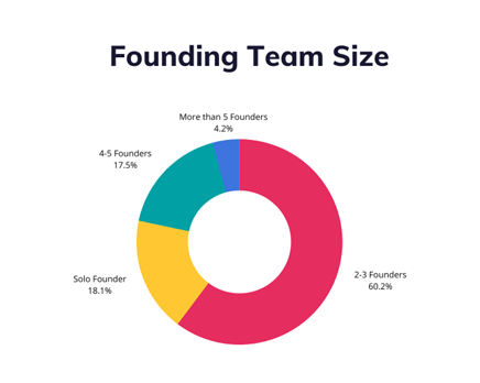 • 9% din startup-uri sunt fondate de o echipă, majoritar de 2-3 fondatori