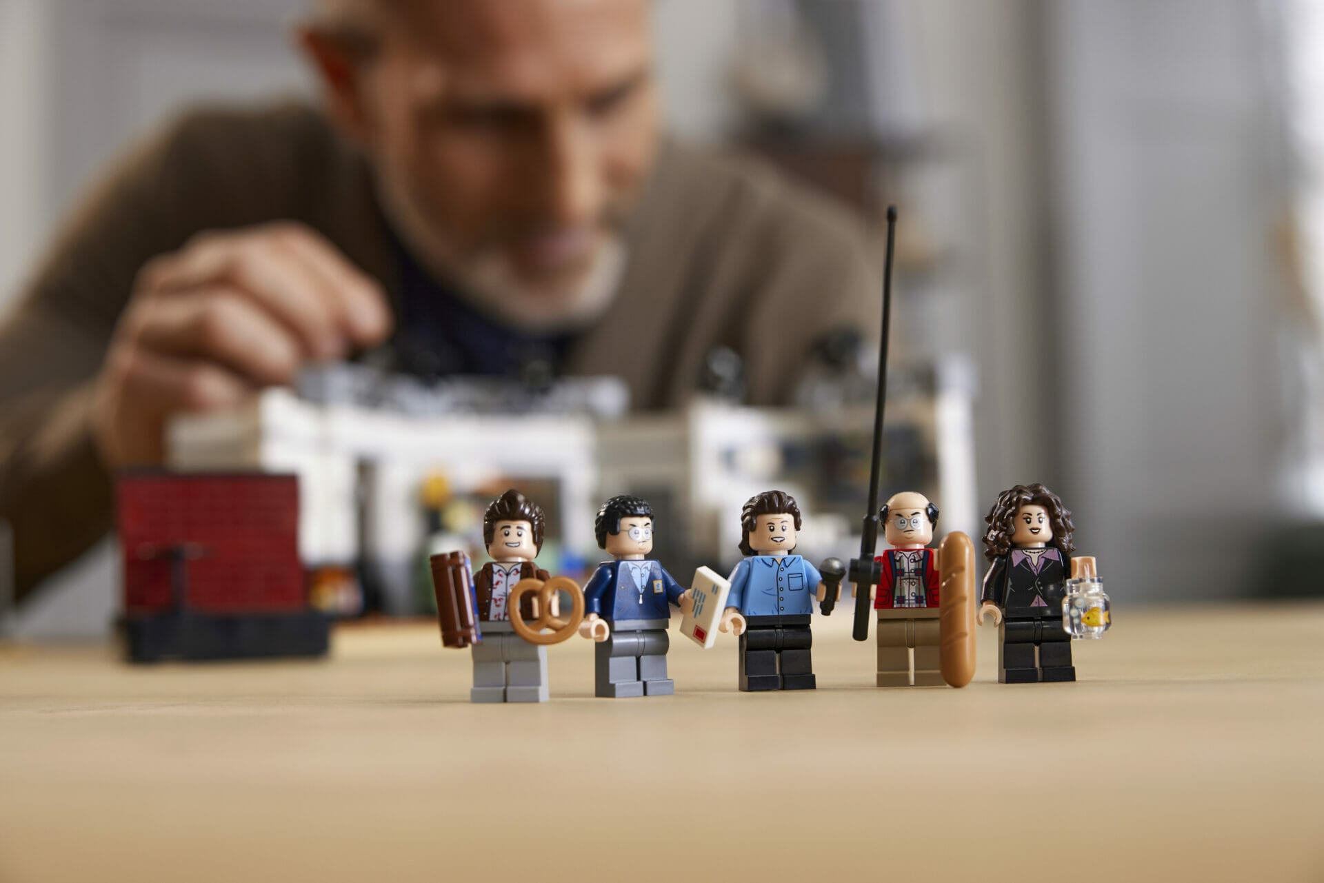 De asemenea, setul include 5 minifigurine inspirate de personajele principale și de poștașul din serial: Jerry Seinfeld, George Costanza, Cosmo Kramer, Elaine Benes și Newman, toți cu ținute specifice anilor ’90.
