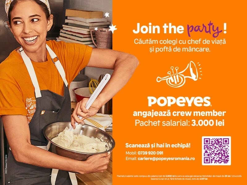 Luna mai marchează startul recrutărilor pentru noile restaurante Popeyes, care vor genera peste 100 de noi locuri de muncă: Crew Members, Shift Managers sau Manager de Restaurant. Noii colegi sunt așteptați în echipă cu unele dintre cele mai atractive salarii de intrare nete din industrie, precum și oportunități de dezvoltare profesională, în echipa unui brand internațional.