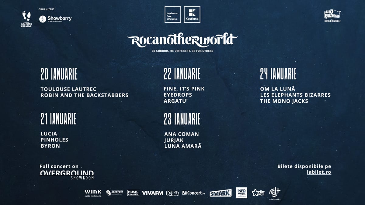Rocanotherworld vine cu 14 concerte ce se pot vedea pe platforma Overground Showroom între 20 – 24 ianuarie iar publicul se poate bucura în plină iarnă de experiența de festival, acasă în living dar alături de toți prietenii și de trupele lor favorite, online.
