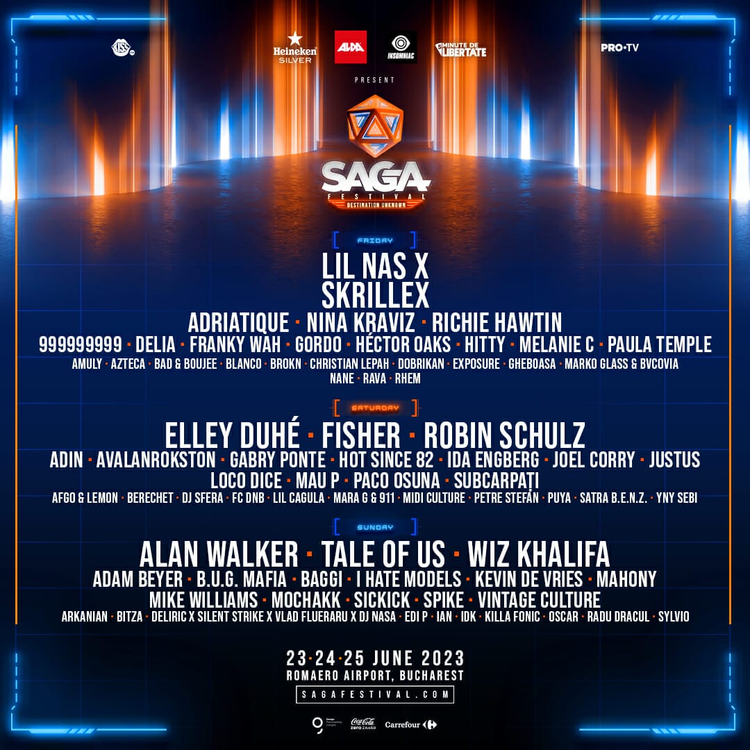 Prezentat de pionierii evenimentelor de muzică electronică, ALDA, parte a familiei Insomniac, SAGA este un festival de muzică inovator, ce are loc pe Aeroportul Romaero din București. SAGA aduce publicului unii dintre cei mai iubiți artiști și o producție audio-vizuală uluitoare, totul intr-o atmosferă incluzivă, care creează o petrecere supremă pe care Bucureștiul o aștepta demult.
