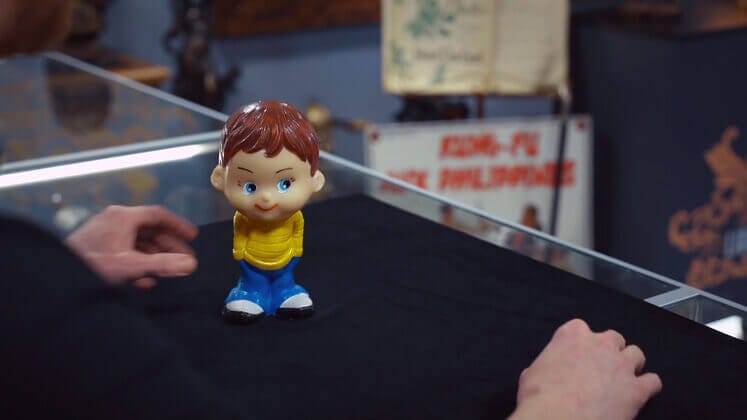 În magazin ajung: o valiză de „ștrengari” – celebrele figurine de cauciuc produse de fabrica Arădeanca, un joc flipper sovietic, autobuze ONT de jucărie, o păpușă „Nadia” – fabricată la Arad, la scurt timp după momentul perfect, de 10, al Nadiei Comăneci, de la Jocurile Olimpice de la Montreal, precum și un album cu imagini necenzurate neatinse de cenzură ale cuplului Nicolae și Elena Ceaușescu. Vânătorii urcă la volanul unui Volvo Amazon și probează o căciulă de astrahan a tovarășului Ceaușescu.