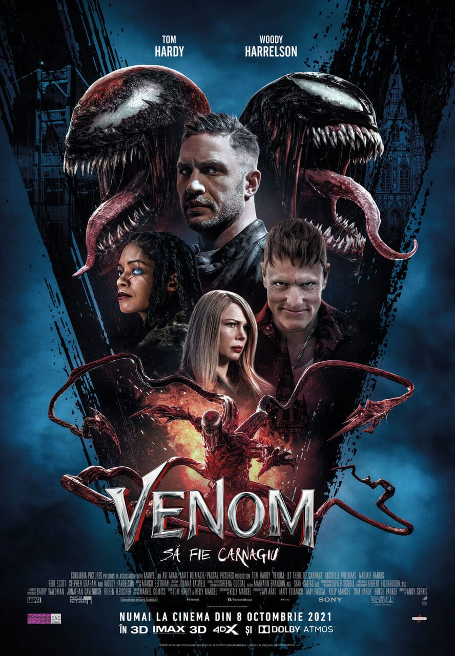 La trei ani de la lansarea primului film Venom”, care a extaziat fanii Marvel de pe întreg mapamondul, povestea anti-eroului continuă cu o nouă aventură de proporții: Venom: Să fie carnagiu”. Thrillerul distribuit de Columbia Pictures și InterComFilm Distribution rulează în avanpremieră de vineri, 8 octombrie 2021, iar pe 15 octombrie a.c. va ajunge în cinematografele din toată țara.