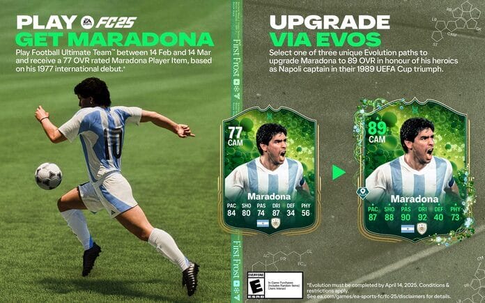 După ce a fost anunțată revenirea uneia dintre cele mai mari legende ale fotbalului, jucătorii vor putea să-l vadă pe Diego Maradona revenind în EA SPORTS FC 25 și Football Ultimate Team, în rolul de ICON și Grassroot Great. Un jucător care a fost adorat de fani, fiind capabil să-și ducă talentul nativ pe cele mai mari scene ale lumii. Pentru jucătorii de EA SPORTS FC Mobile, Maradona va fi disponibil în joc începând cu 20 februarie.