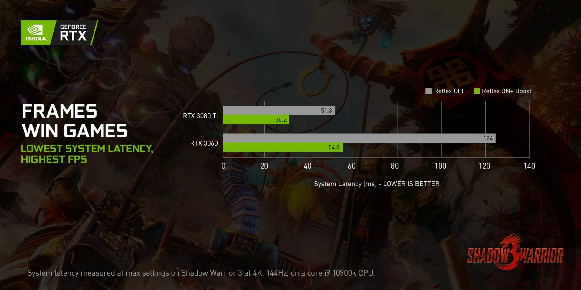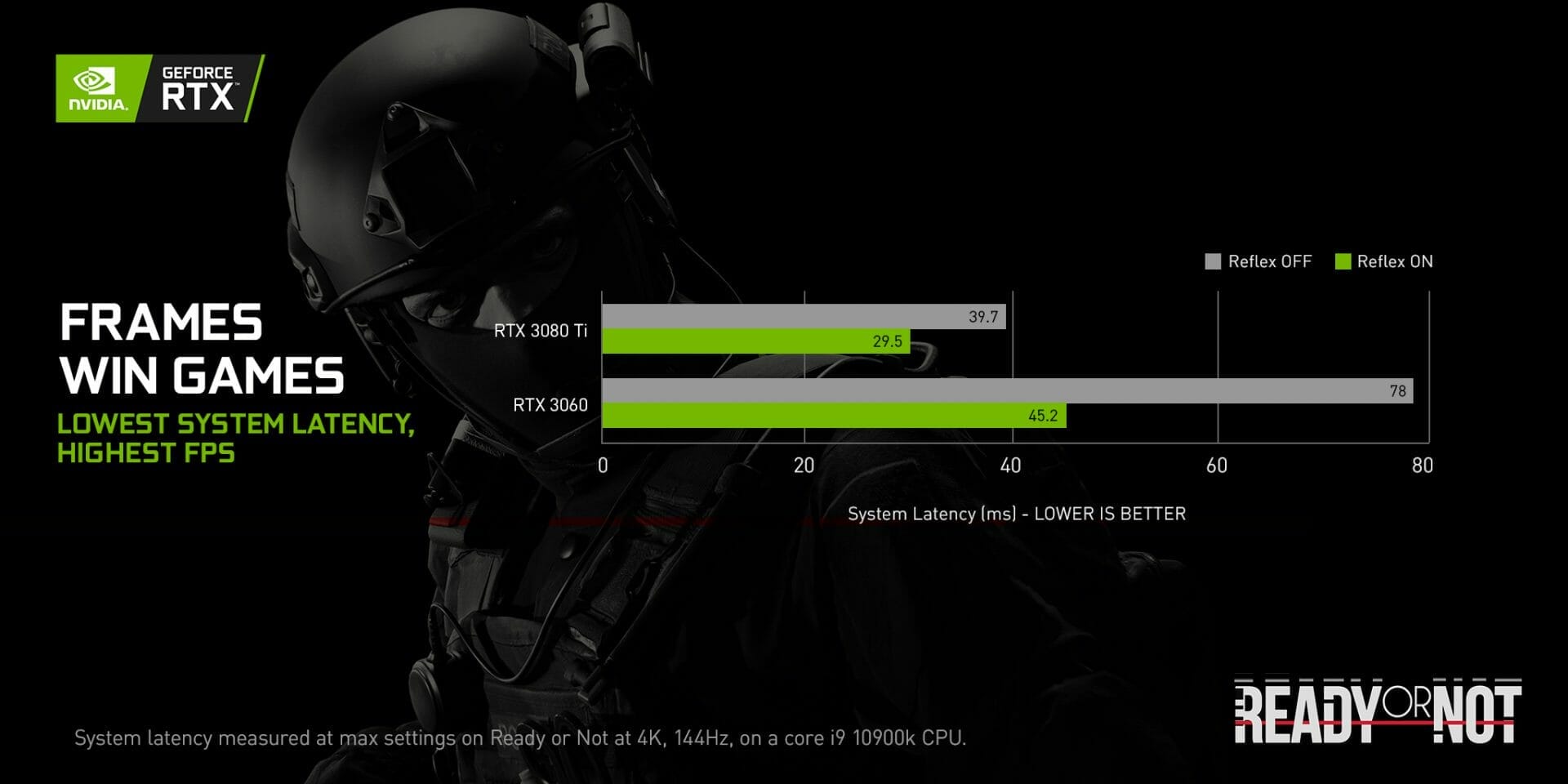 Astăzi, NVIDIA anunță că gamerii GeForce care joacă Shadow Warrior 3 și Ready or Not pot reduce latența sistemului în aceste jocuri cu adiția tehnologiei NVIDIA Reflex. Pornirea Reflex în Shadow Warrior 3 reduce latența sistemului cu până la 56%, în timp ce Ready or Not beneficiază de o scădere a latenței de 42%. Scăderea latenței sistemului ajută jucătorii să fie mai competitivi.