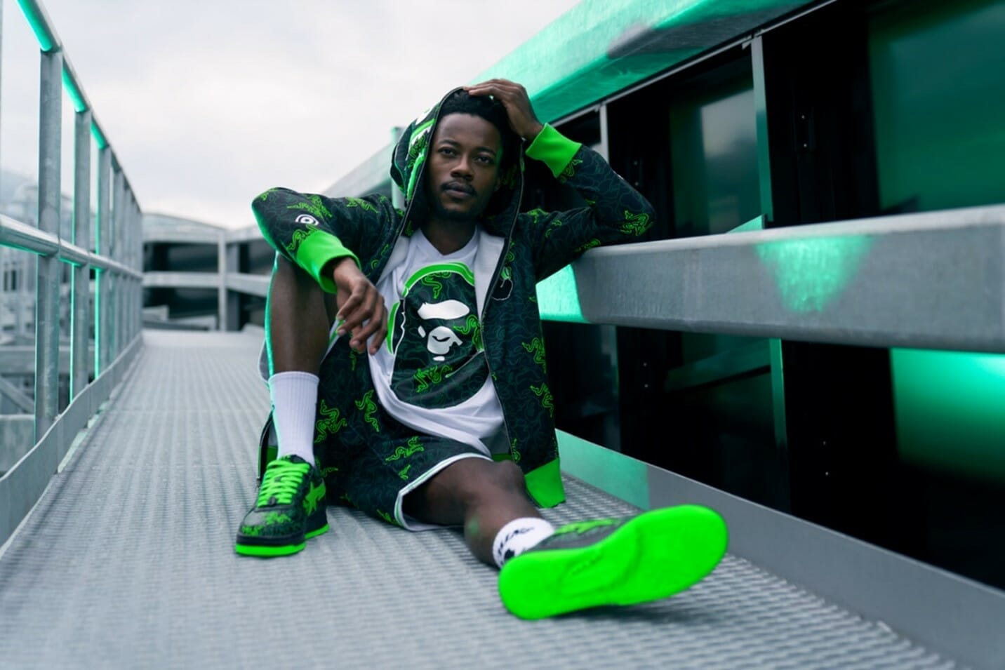 Printre vedetele acestui sezon se numără pantofii sport BAPE STA™ având design-ul faimos BAPE®’s și sigla în formă de stea BAPE STA™. Pantofii sport sun decorați cu verde care luminează în întuneric, inspirat de verdele caracteristic brandului Razer, care complementează imprimeul camo conceput de BAPE® și sigla Razer.