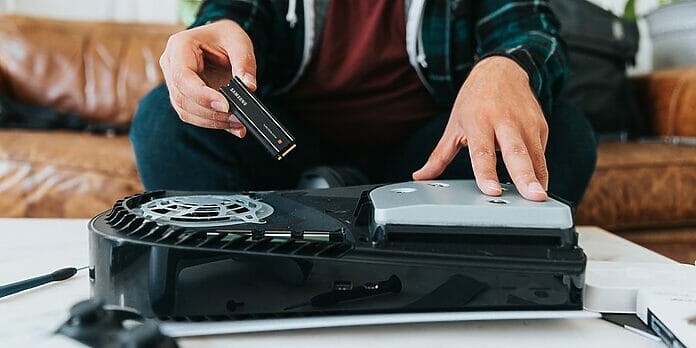 Înlocuirea hard disk ului unui PS5 este extrem de simplă. În afară de Samsung 980 Pro Heatsink prezentat mai sus, vei avea nevoie doar de niște spațiu (cum ar fi o masă curată) și de o șurubelniță în cruce Philips nr. 1. Întregul proces durează doar câteva minute și va fi compensat curând de beneficiul unor timpi de încărcare mai rapizi.