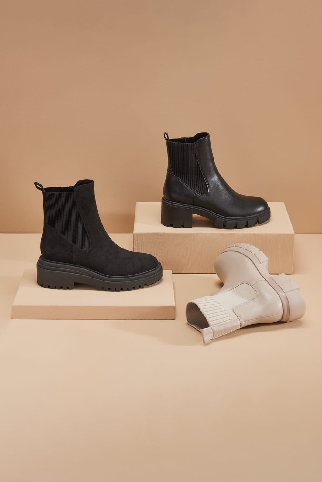 Ghetele bej sau maro merg de minune alături de pantaloni și sacouri, în ținute monocrome. Este un mix ideal pentru zilele care includ un eveniment sau o ieșire la cină.