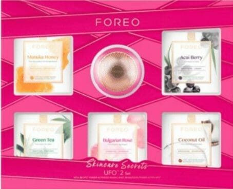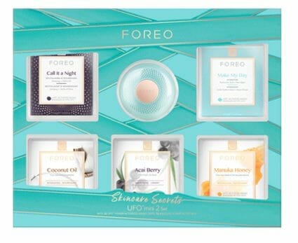 În plus, setul include și un tratament complex al pielii UFO 2 mini  de 2 minute cu termoterapie, pulsație T-Sonic și terapie cu lumină LED, împreună cu o mască de față de netezire Farm to Face Acai Berry, care netezește ridurile și liniile mai adânci în doar 90 de secunde.