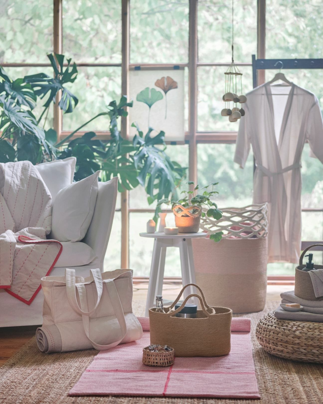 Respectând semnificația acestui cuvânt, colecția include produse textile, cum ar fi kimono-uri, covoare pentru yoga și pături, dar și coșuri de picnic, soluții de depozitare, boluri și ghivece pentru plante. Colecția a fost creată de designerii IKEA, Akanksha Deo și Sarah Fager, cele mai multe produse fiind lucrate manual sau fabricate într-un mediu industrial sustenabil, asigurat de întreprinderile sociale cu care a colaborat IKEA.