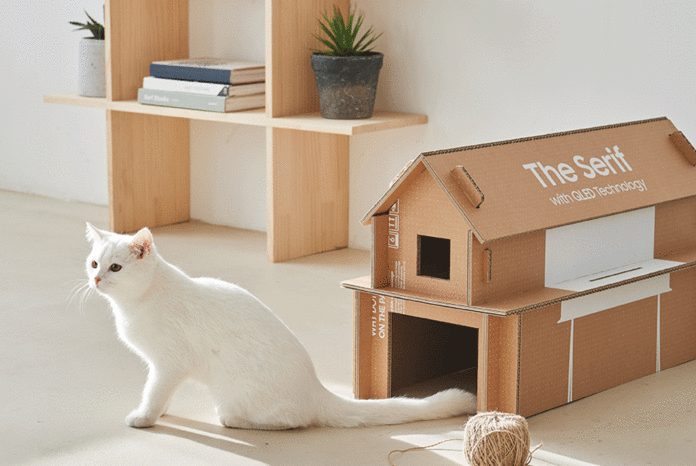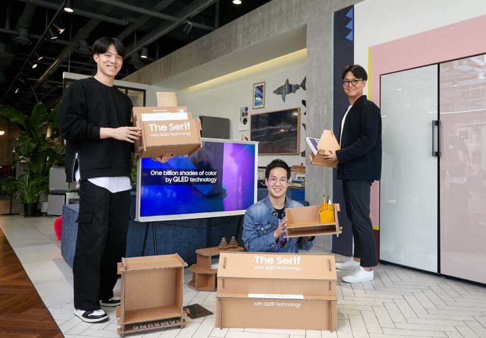 În acest an, Samsung Electronics a introdus noul său concept de „eco-packaging” – un ambalaj de produs cu totul nou, care facilitează reutilizarea cutiilor în care sunt împachetate noile modele de televizoare de tip lifestyle ale companiei precum „The Frame”, „The Serif” și „Sero“. Cutiile speciale din carton le permit utilizatorilor să transforme ambalajul în care au venit televizoarele în piese de mobilier mici și versatile, încurajând astfel reutilizarea lor. Cartonul gros ondulat din care este alcătuit ambalajul poate fi folosit pentru a construi mese de dimensiuni mici și rafturi, iar instrucțiunile de asamblare pot fi accesate prin scanarea codurilor QR de pe exteriorul cutiei.
