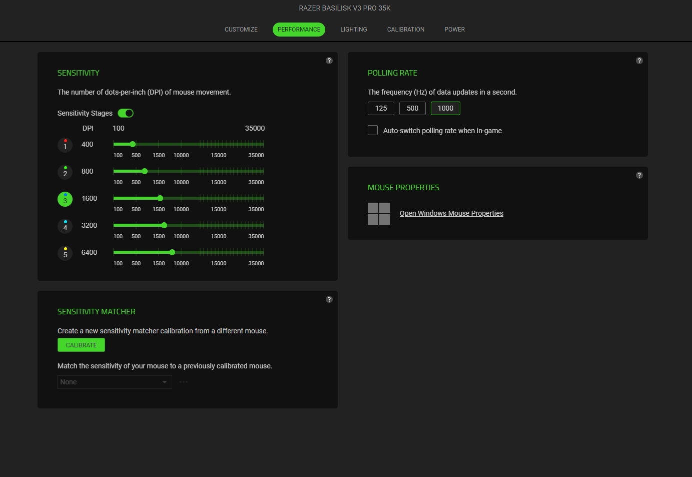 Razer Basilisk V3 Pro 35K vine cu o funcție interesantă ce poartă numele de Sensivity Matcher și îți realizează un match între sensivitatea și feeling-ul vechiului mouse cu noul Razer Basilisk V3 Pro 35K.