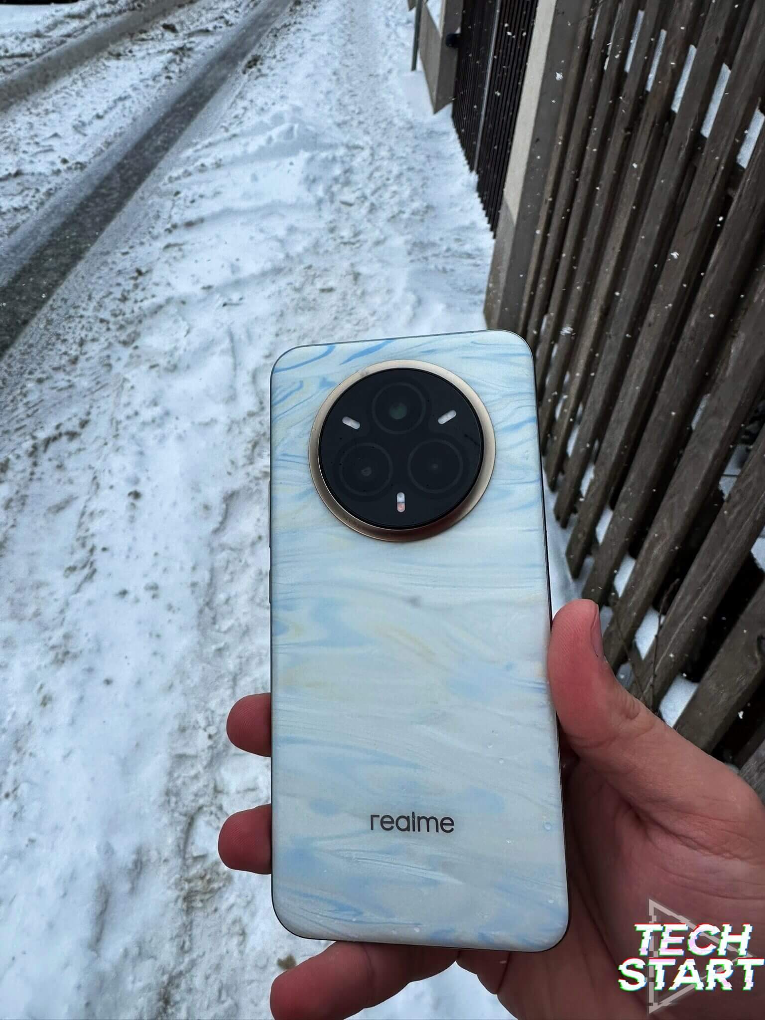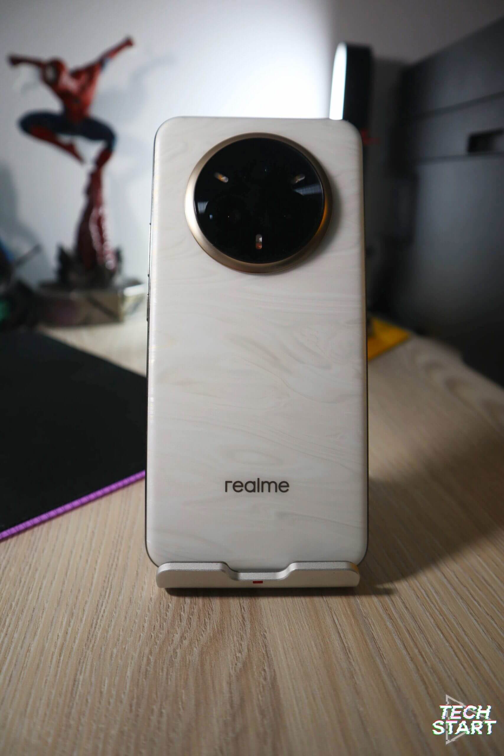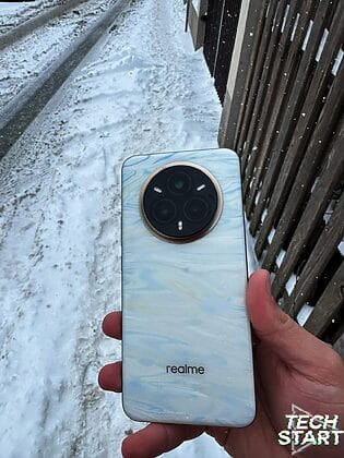 Designul este unul ce mi-a atras atenția încă din primele momente în care am văzut detalii despre acest nou realme. Varianta testată de către noi este cea ce vine în culoarea Pearl White ce este realizată dintr-un material ce reacționează la temperatura ambientală.