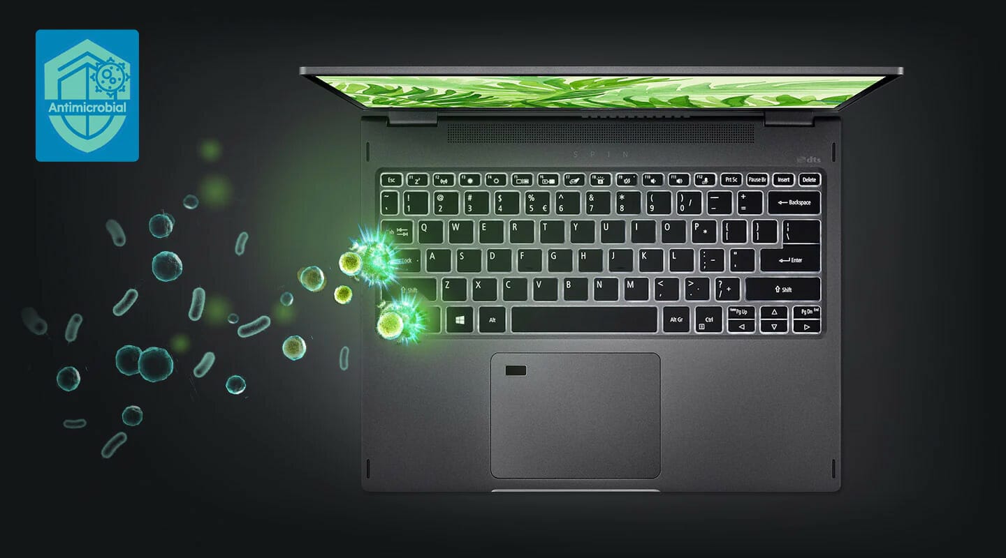 Un alt element ce este tot mai utilizat în ziua de astăzi la laptop-uri este faptul că ele sunt tratate cu o soluție antimicrobiană cu ioni de argint și acoperă marea majoritate a zonelor unde mâinile ating cel mai mult laptop-ul precum :