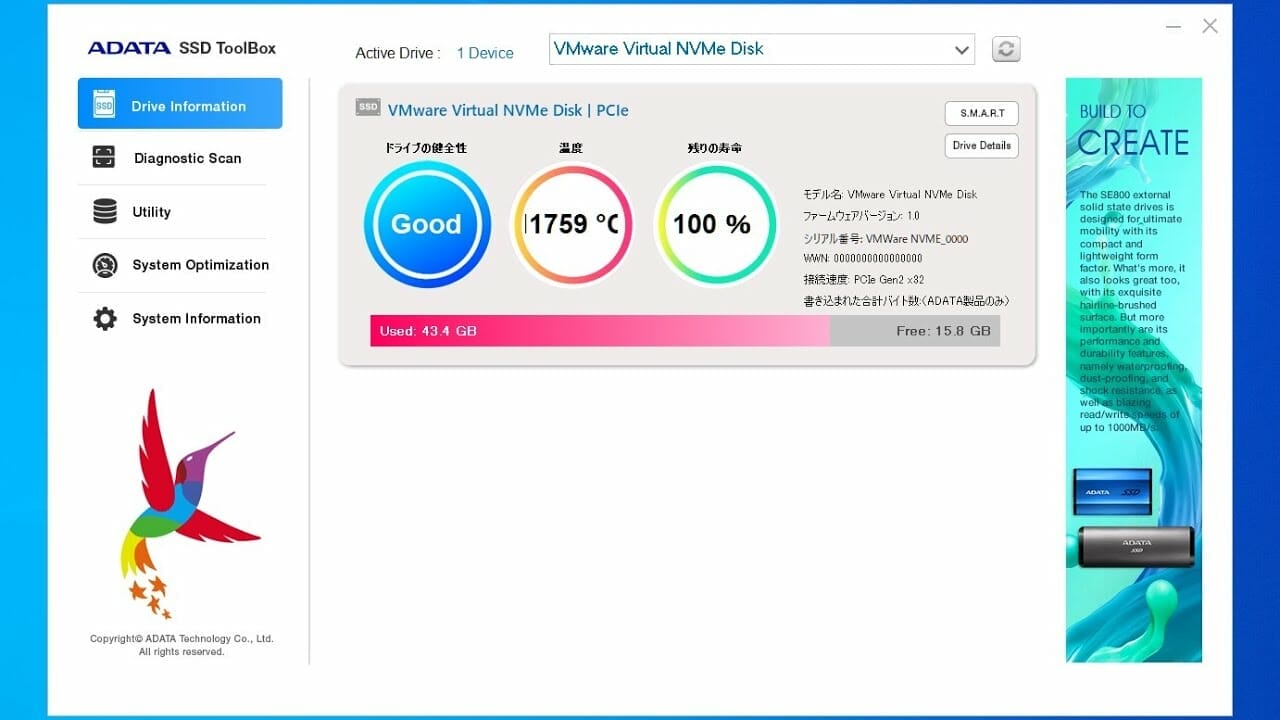 Ce mi-a plăcut la acest SSD este faptul că ADATA oferă și un software dedicat intitulat ADATA SSD ToolBox ce îți arată performanța și starea SSD. În plus îți dă diferite recomandări pentru o performanță mai bună dar și upgrade la firmware-ul.