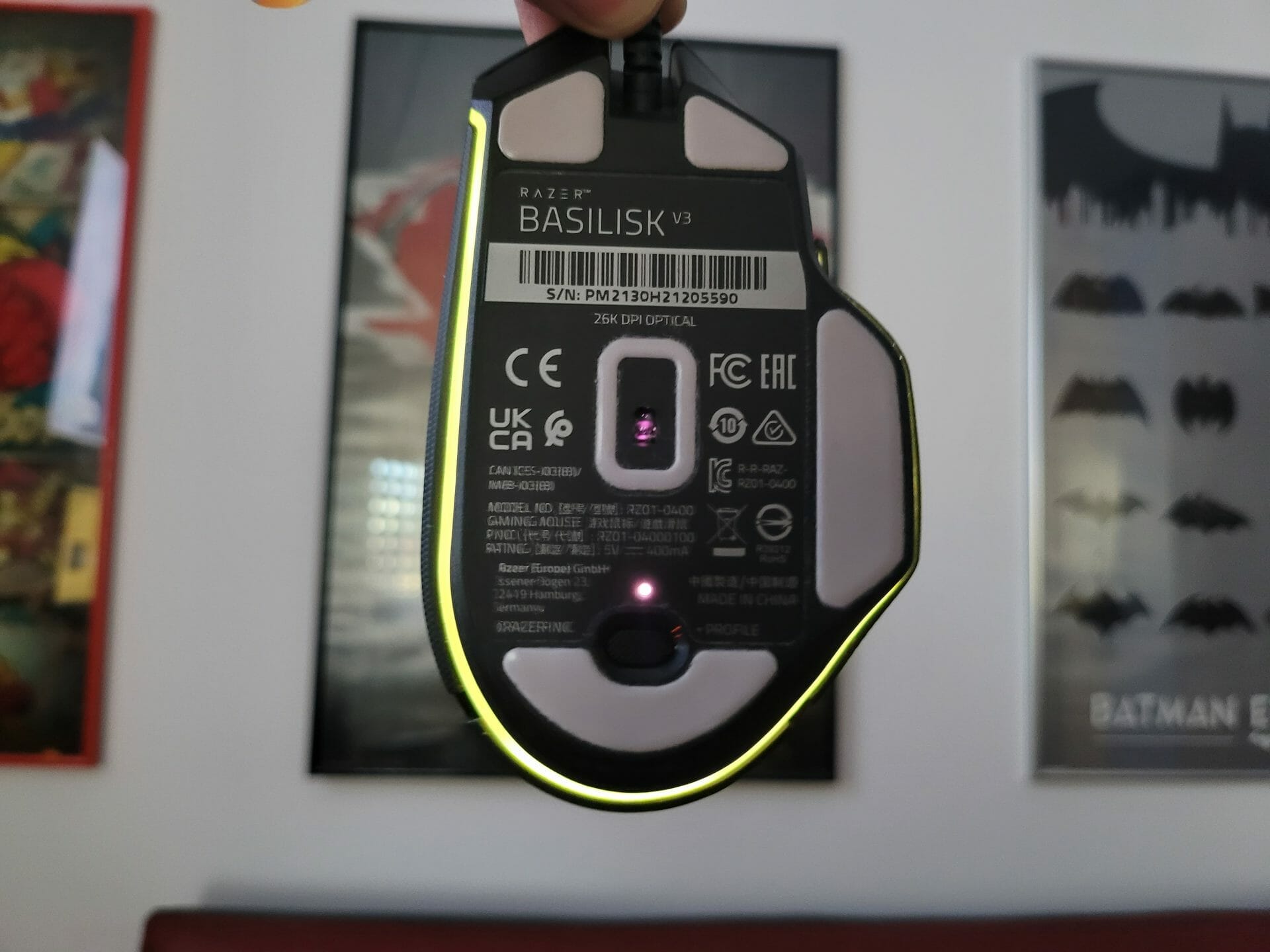 Razer Basilisk V3 are sub capotă un senzor optic Razer Focus+ 26K DPI și mouse-ul atinge un polling rate de 1000 Hz. Pe lângă cele prezentate switch-urile optice Razer sunt cele din generația a doua și au un timp de acționare de 0.2ms.