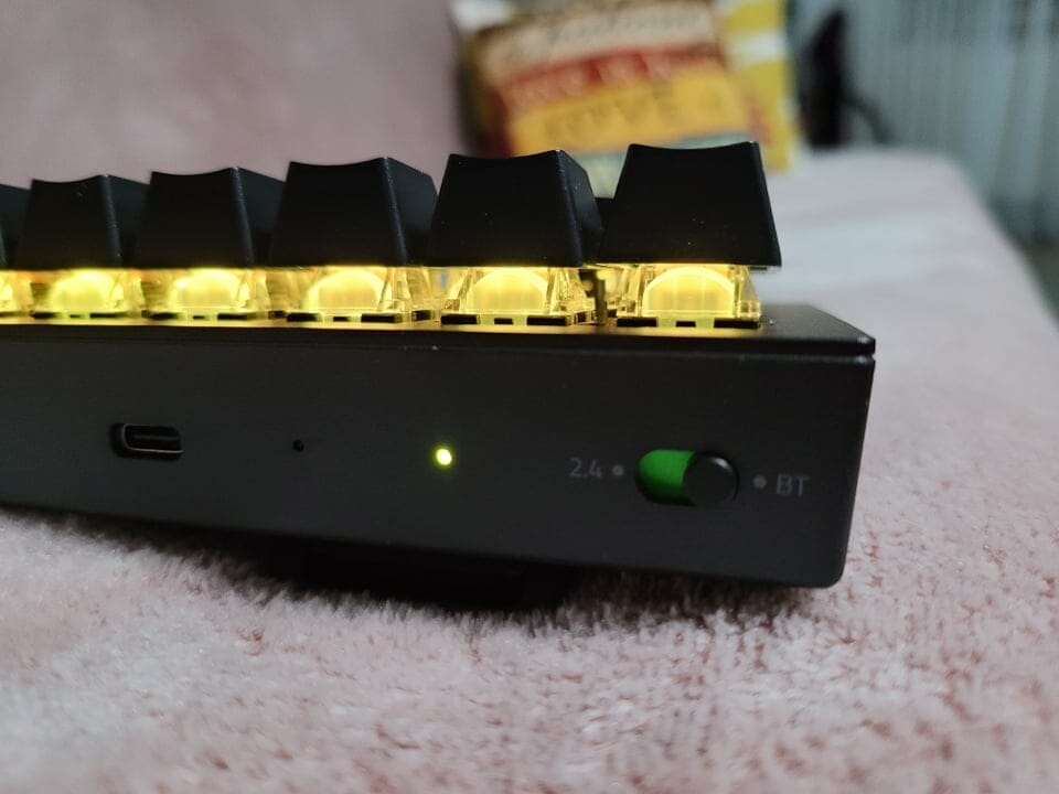 Astfle reiese că tastatura se poate conecta atât printr-un fir USB, sau dongle-ul HyperSpeed cât și prin Bluetooth.  Iar prin Bluetooth se poate conecta simultan până la trei device-uri și se poate comuta prin ALT+FN+1,2,3.  Iar pentru Wireless avem parte de o conectare la 2.4 GHz.