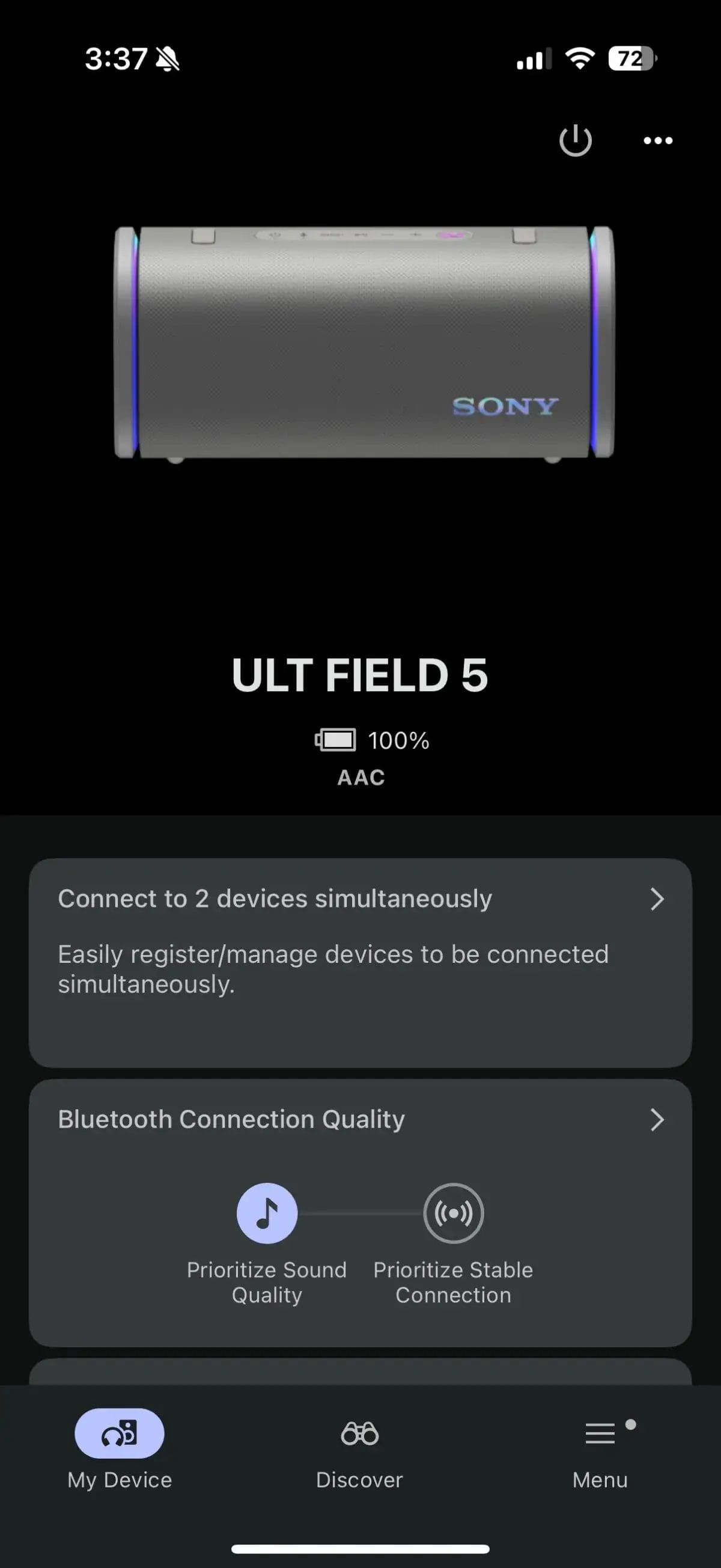 - Aplicația Sony Sound Connect asigură control complet asupra EQ‑ului, luminilor și funcțiilor de baterie precum „Battery Care” (încărcare limitată la 90%)
