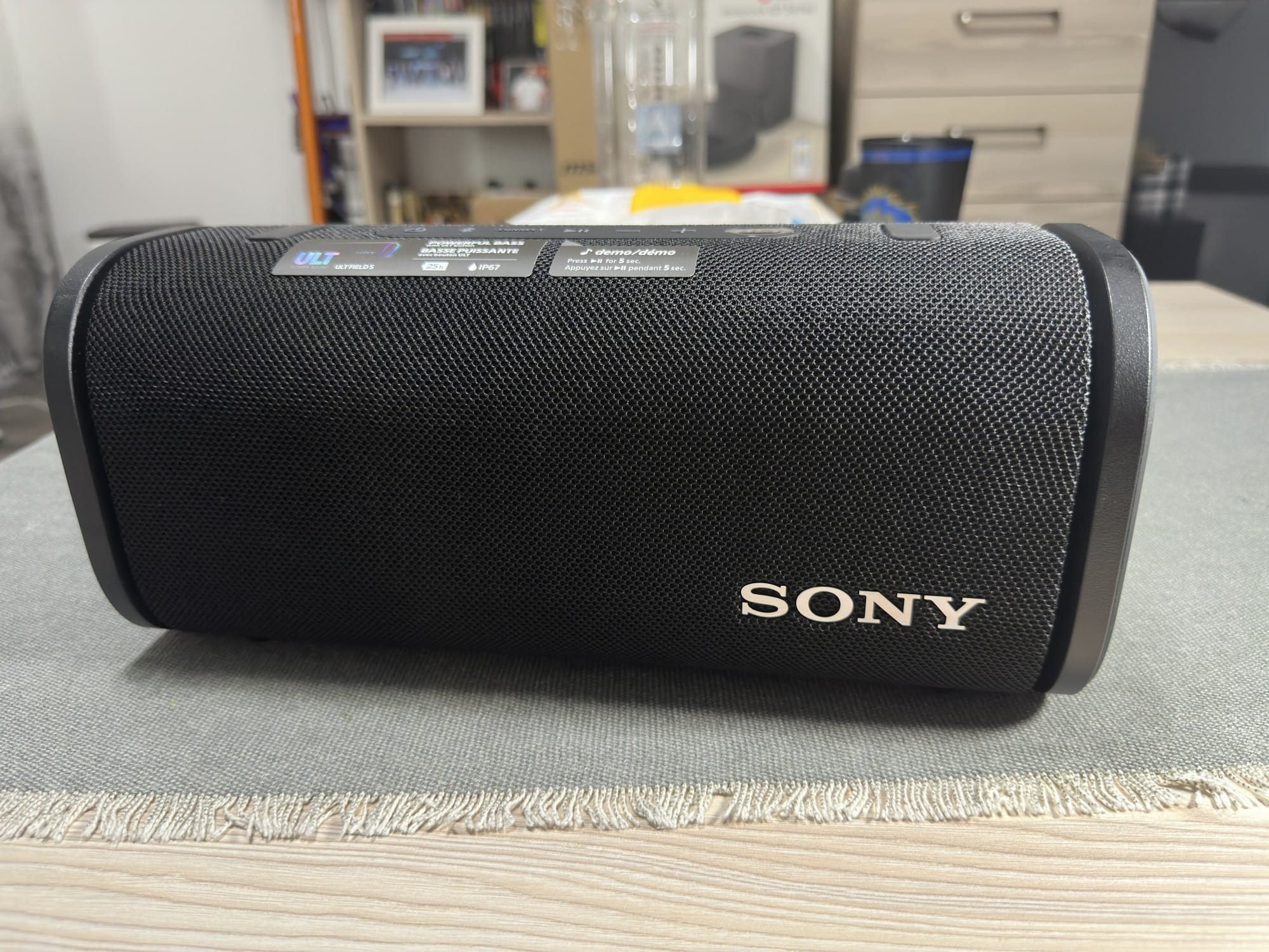 Tuningul acustic realizat de Sony accentuează în mod clar frecvențele joase și înalte ceea ce înseamnă că bass-ul este profund și pătrunzător, iar înaltele sunt strălucitoare și vibrante. Mediile (sunetele centrale, precum vocile și instrumentele ritmice) sunt ușor retrase în fundal, dar per total mixul este unul plăcut, mai ales pentru muzică ritmată, electronică, hip-hop sau rock. La volum maxim, se poate observa o ușoară compresie a bass-ului, dar asta este comun pentru boxele portabile de această dimensiune.