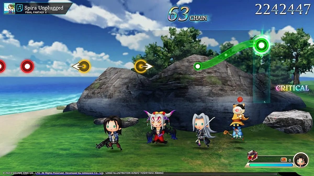 Ce pot menționat cu acest titlu este că se aseamănă cu serie de jocuri Guitar Hero doar că melodiile sunt cele din titlurile Final Fantasy și dacă ești un fan al acestei serii de jocuri vei juca cu plăcere cele peste 300 melodii oferite. În plus Square Enxix promite că oferă peste 90 de melodii din jocurile sale sub formă de DLC și vom regăsii titluri precum Nier, Octopath Traveler, Chrono Trigger etc.