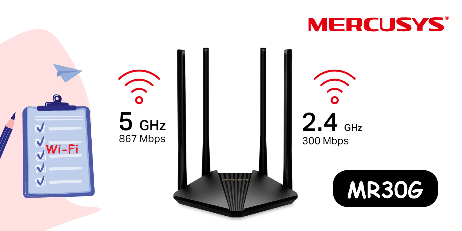 Respectând standardele 802.11ac, MR30G oferă conexiuni Wi-Fi rapide de până la 1.2 Gbps. Astfel, banda de 2.4 GHz (300 Mbps) poate transmite semnalul pe distanțe mari, dincolo de pereții solizi ai locuinței, pentru social media sau atunci când e nevoie de expedierea unui mail important. Pentru streaming video HD, gaming sau aplicații care necesită lățime de bandă extinsă, utilizatorii pot alege banda de 5 GHz (867 Mbps) care livrează viteze mari cu interferență redusă.