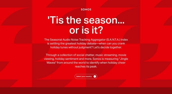 Sonos anunță lansarea noului său index Seasonal Audio Noise Tracking Aggregator (S.A.N.T.A) Index – un algoritm special, dedicat sărbătorilor de iarnă, care va contribui stabilirea răspunsului la una dintre cele mai dezbătute întrebări din această perioadă: când începe de fapt sezonul festiv?