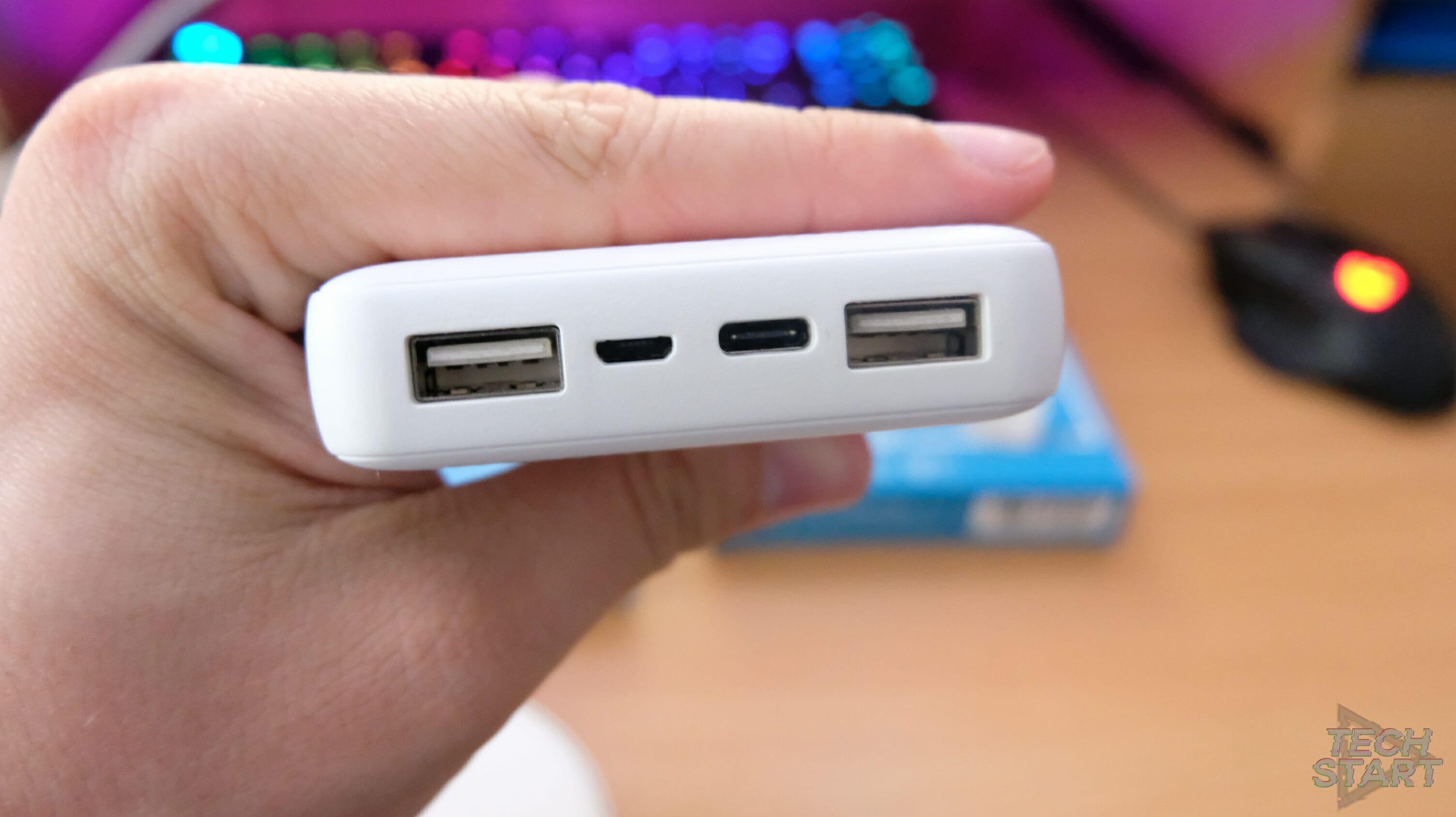 Cutia este una destul de simplă, se regăsește powerbank-ul propriu zis, alături de un cablu USB- micro USB ce ajută la încărcarea atât a powerbank-ului cât și a unui telefon.
