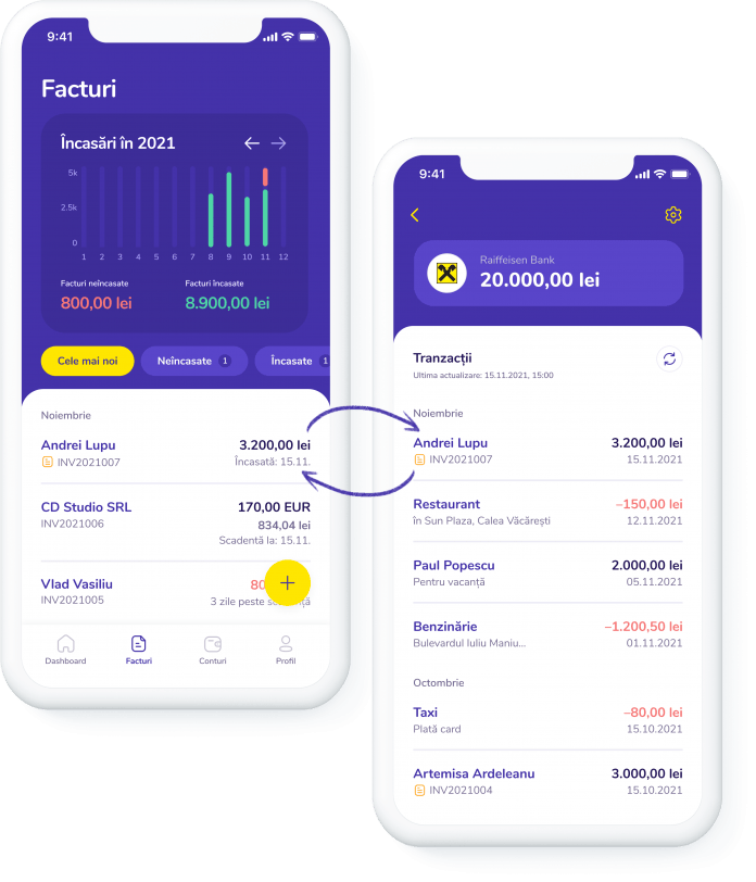 - Urmărirea automată a statusului facturilor: Prin intermediul tehnologiei de asociere factură-plată, utilizatorii sunt mereu la curent cu ce facturi sunt încasate, neîncasate și restante.