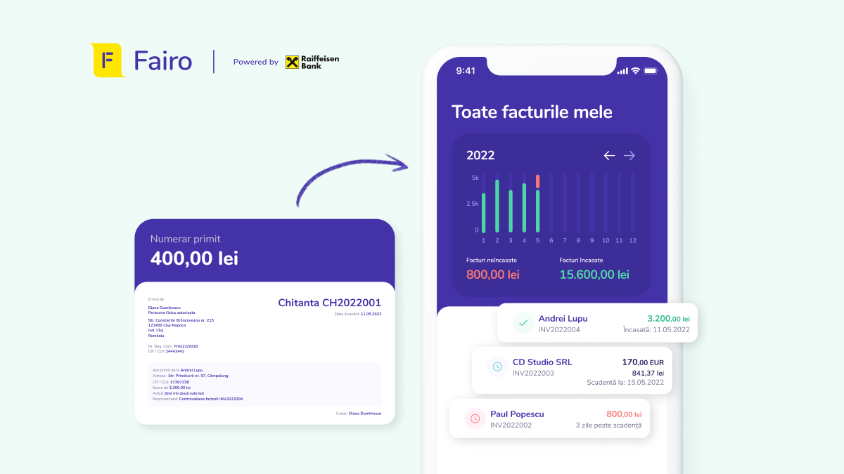Cele două funcționalități au fost deja adăugate soluției de facturare, disponibilă în aplicație atât pentru utilizatorii pachetului gratuit Fairo GO, cât și pentru cei cu abonamentul premium Fairo RUN. Utilizatorii care au abonament Fairo GO vor putea emite chitanțe pentru plata în numerar a facturilor aferente pentru maximum 5 clienți. Iar dacă vor să emită facturi și chitanțe pentru plata în numerar pentru mai mulți clienți, au posibilitatea de a-și face upgrade la Fairo RUN pentru 4,99 lei pe lună.