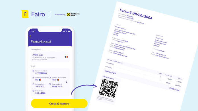 A doua funcționalitate recent lansată presupune că toate facturile emise prin Fairo vin de acum înainte cu un cod QR pentru a ușura procesul de plată din partea clienților.