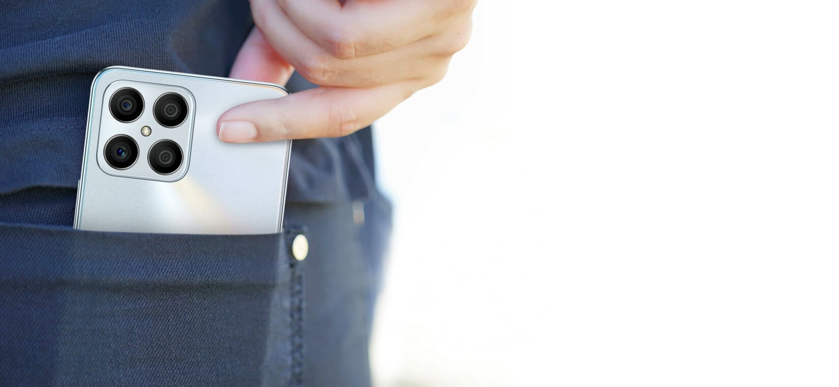 Fiind incredibil de subțire, elegant și modern, HONOR X8 a fost proiectat cu o carcasă ultra subțire și ușoară, cu o grosime de doar 7.45 mm și o greutate de numai 177 g. Având un design cu margini plate și colțuri rotunjite elegante pe toate cele patru laturi, HONOR X8 se potrivește foarte bine în palmă și se poate strecura cu ușurință în genți de mici dimensiuni și buzunare înguste. Astfel, dispozitivul este ușor de transportat peste tot de către utilizatori.