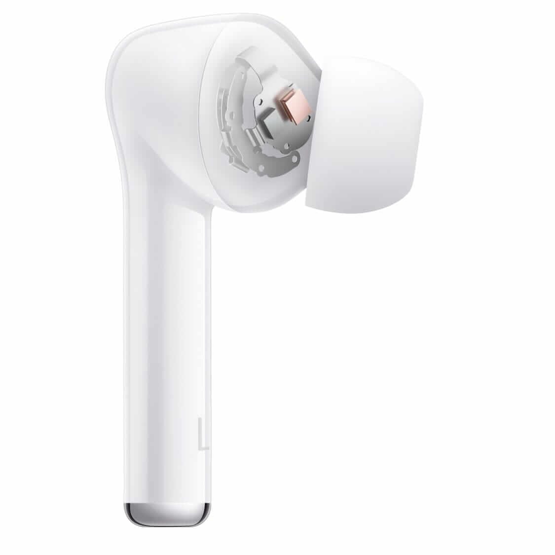 Cu un design minimalist și modern, Huawei FreeBuds 3i prezintă corpuri principale ergonomice în formă de con, completate cu vârfuri flexibile din silicon, în patru dimensiuni diferite, pentru o experiență confortabilă și sigură.