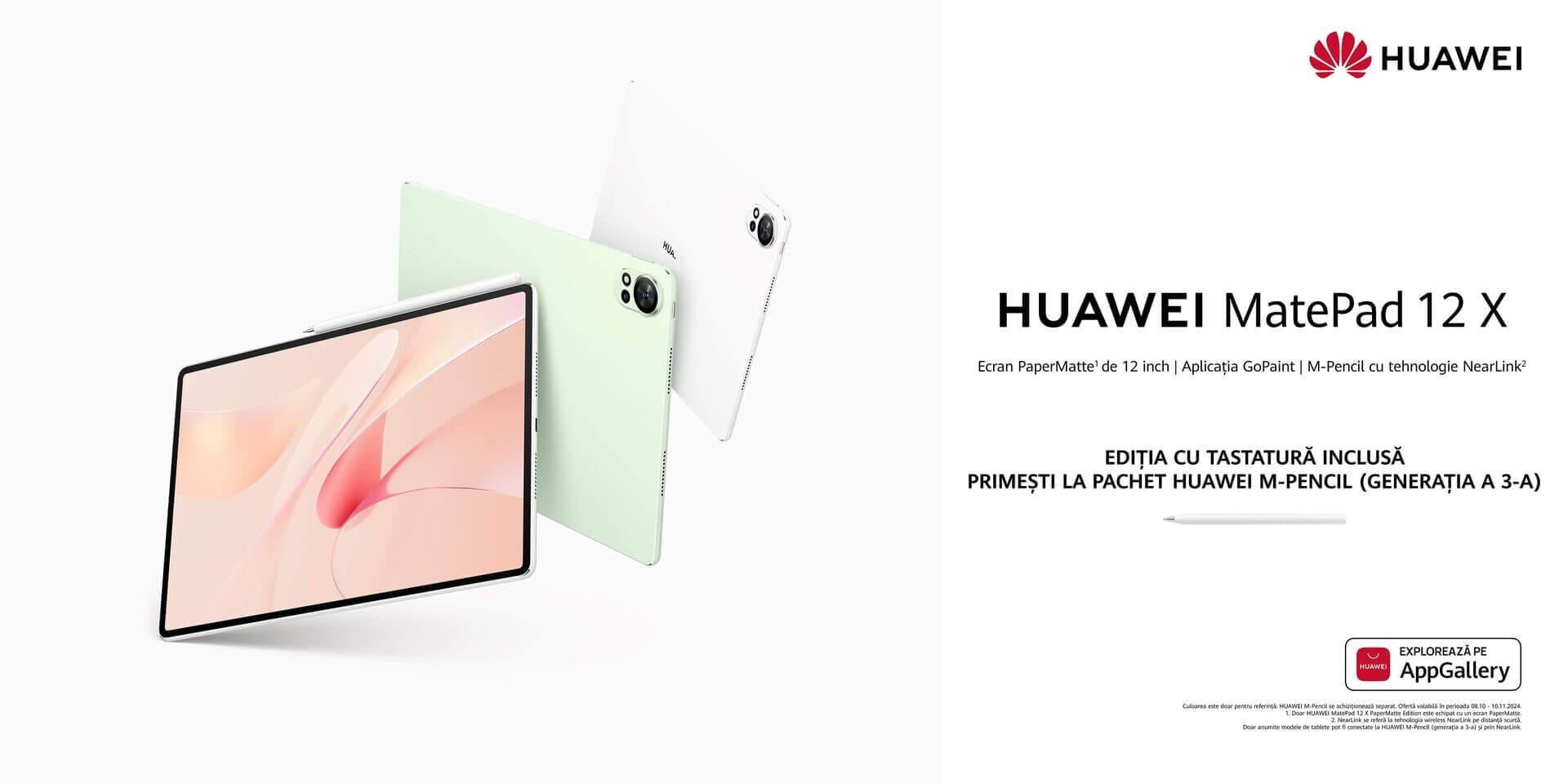Noile tablete HUAWEI MatePad Pro 12.2’’ și MatePad 12 X, dispozitive de productivitate extrem de utile, concepute pentru a redefini modul în care profesioniștii și creatorii de conținut își desfășoară activitatea, devin disponibile în România, în oferta HUAWEI Store.