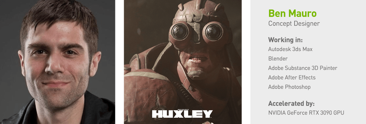 Ben Mauro, concept designer și storyteller vine săptămâna aceasta În NVIDIA Studio pentru a prezenta trailer-ul 3D intitulat Huxley. Mauro a adus acest trailer 3D la viață utilizând plăci video NVIDIA GeForce RTX și s-a ajutat de experiența pe care a căpătat-o lucrând la jocuri precum Halo Infinite și Call of Duty: Black Ops lll.