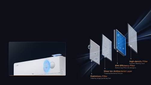În plus, Algoritmul Smart Big Data Model FreshIN 3.0 ajustează în mod inteligent activitatea compresorului pe baza condițiilor interioare în timp real, asigurându-se că aparatul de aer condiționat funcționează eficient fără a compromite confortul. Această tehnologie avansată ajută FreshIN 3.0 să obțină o clasificare energetică A+++, fiind astfel o alegere durabilă pentru utilizatorii care doresc să minimizeze atât impactul asupra mediului, cât și costurile cu factura la energia electrică. Pentru a spori și mai mult confortul, sistemul actualizat Four-fold de reducere a zgomotului atinge un minimum de 16 dB, reducând nivelul de zgomot standard din industrie cu 10 dB(A) pentru același debit de aer. De asemenea, unitatea include o funcție de autocurățare, contribuind la o mentenanță fără efort și un aer respirat mai curat.
