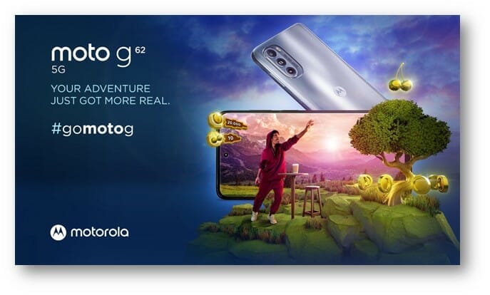 Motorola lansează cel mai nou model din gama moto g, g62 5G. Dotat cu ecran premium, sistem de camere impresionant și tehnologia Dolby Atmos® pentru experiențe sonore de top, noul smartphone din gama moto g este destinat utilizatorilor în căutare de specificații tehnice unice. G62 va fi disponibil în România începând cu data de 27 iunie, online și în magazinele partenerilor autorizați, la prețurile recomandate de 1.199 lei pentru varianta cu 4GB RAM și 128GB spațiu de stocare și 1.099 lei pentru varianta cu 4GB RAM și 64GB spațiu de stocare.