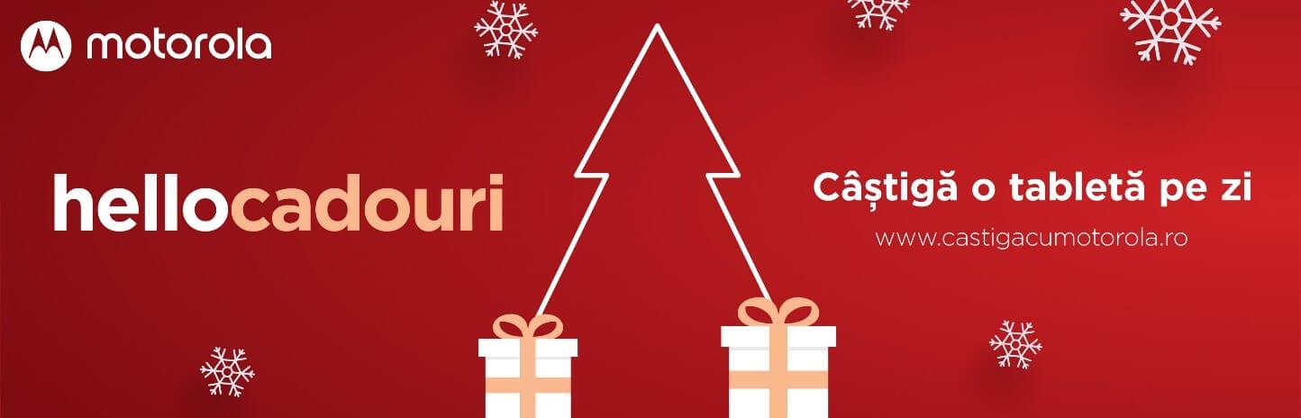 Motorola dă startul celei mai îndrăgite perioade din an și vine cu lansarea campaniei #hellocadouri. Iar în perioada 1 -20 decembire, orice telefon Motorola cumpărat atât de pe platforma Motorola sau de la partenerii ( Altex, Digi, Media Galaxy, Vodafone și Orange) pot intra în cursa unor super premii.