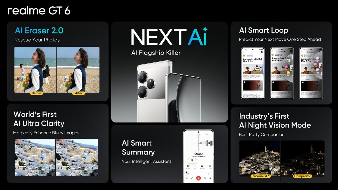 realme este încântată să anunțe lansarea de îmbunătățiri AI pentru GT 6T, inclusiv AI Eraser 2.0, AI Smart Summary și AI Smart Loop. Aceste caracteristici de ultimă oră continuă promisiunea realme de a oferi experiențe premium bazate pe AI pentru tinerii utilizatori din întreaga lume.