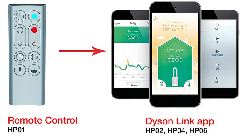 Pentru controlul lui Dyson Pure Hot+Cool avem o telecomandă ce are o serie de funcții însă putem controla și monitoriza aparatul cu ajutorul unei aplicații ce se poate descărca pe smartphone-ul nostru și se poate controla în orice moment. Fiind perfect dacă vrem să îi dăm drumul înainte de a ajunge acasă de la muncă sau din oraș.