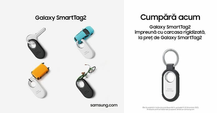 Noul Galaxy SmartTag2 este disponibli pentru achiziție pe http://samsung.com/ro și la parteneri începând cu 11 octombrie. Cei care cumpără un Galaxy SmartTag2 vor primi o husă pentru acesta cadou.