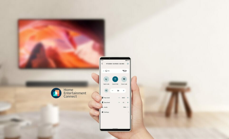 Configurarea și utilizarea soundar-ului este mai ușoară ca niciodată cu aplicația Sony | Home Entertainment Connect. Aceasta va putea ghida utilizatorii prin setările inițiale, va oferi suport în rezolvarea problemelor și asigură control complet asupra volumului, câmpurilor sonore și multe altele, direct de pe un smartphone. De asemenea, oferă informații utile – cum ar fi recomandarea de funcții, noi actualizări de software, dar și altele.