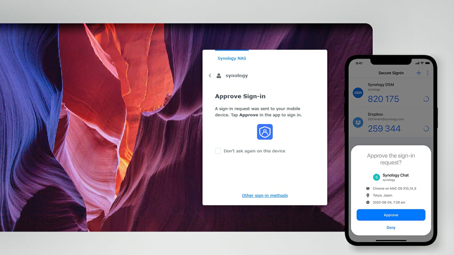 Alături de îmbunătățirile aduse platformei, cum ar fi suportul unor volume de până la 1 PB pentru sarcini foarte mari, DSM 7.0 aduce, de asemenea, îmbunătățiri la nivel de securitate prin intermediul Secure Sign-In. Acest nou sistem de securitate face ca autentificarea prin doi factori să fie simplă de utilizat.