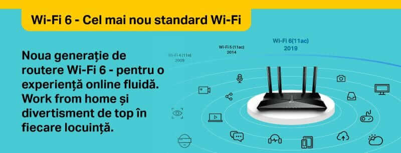 1. Noua generație de routere Wi-Fi 6 – pentru o experiență online fluidă. Work from home și divertisment de top în fiecare locuință.