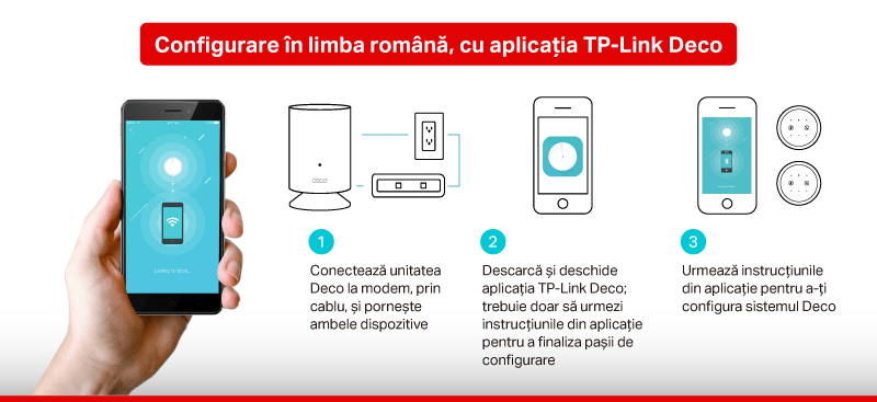 - Instalare mai simplă ca niciodată: Instrucțiuni pas cu pas pe parcursul întregului proces de instalare, datorită Aplicației Deco.