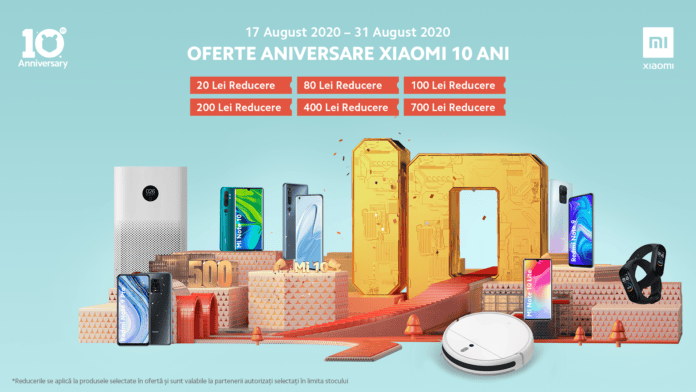Xiaomi unul dintre liderii globali în tehnologie, marchează în această lună 10 ani de la fondare. Iar cu această ocazie Xiamoi vine cu nenumărate discount-uri ce vor fi disponibile în perioada 17-31 august.
