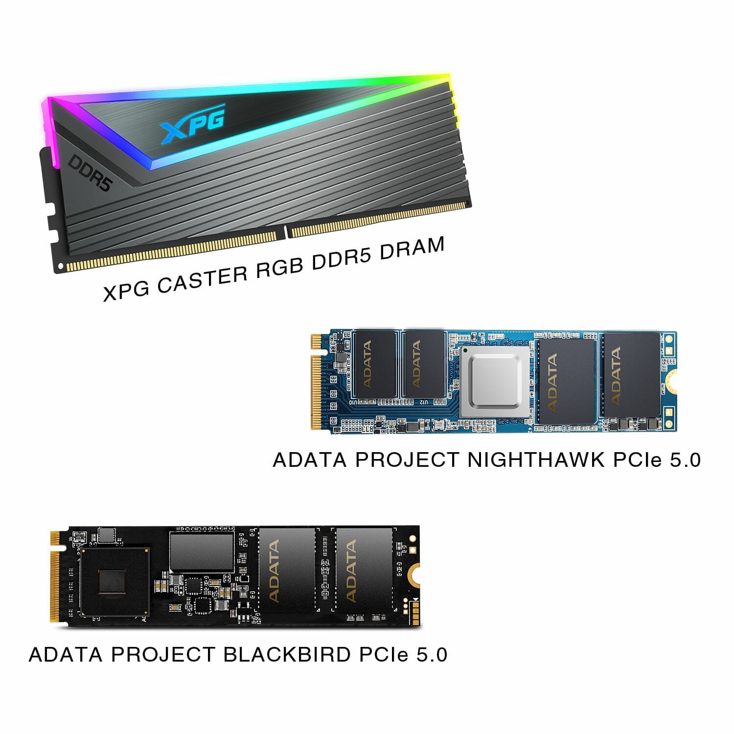 În plus, două prototipuri de SSD-uri PCIe Gen5x 4 ADATA vor avea o apariție specială la stand. Acestea includ „Project Nighthawk” care dispune de un controler Silicon Motion SM2508 și este capabil să ofere performanțe de citire/scriere secvențială de până la 14/12 GB/s, și „Project Blackbird” cu un controler InnoGrit IG5666 capabil să ofere viteze de citire/scriere de până la 14/10 GB/s. Ambele SSD-uri au capacități de până la 8TB. Va fi lansat și noul SSD extern USB4 Elite SE920 de la ADATA. Acest model este capabil de rate de transfer de până la 40 Gb/s și are un design proprietar de răcire termică cu ventilator încorporat.