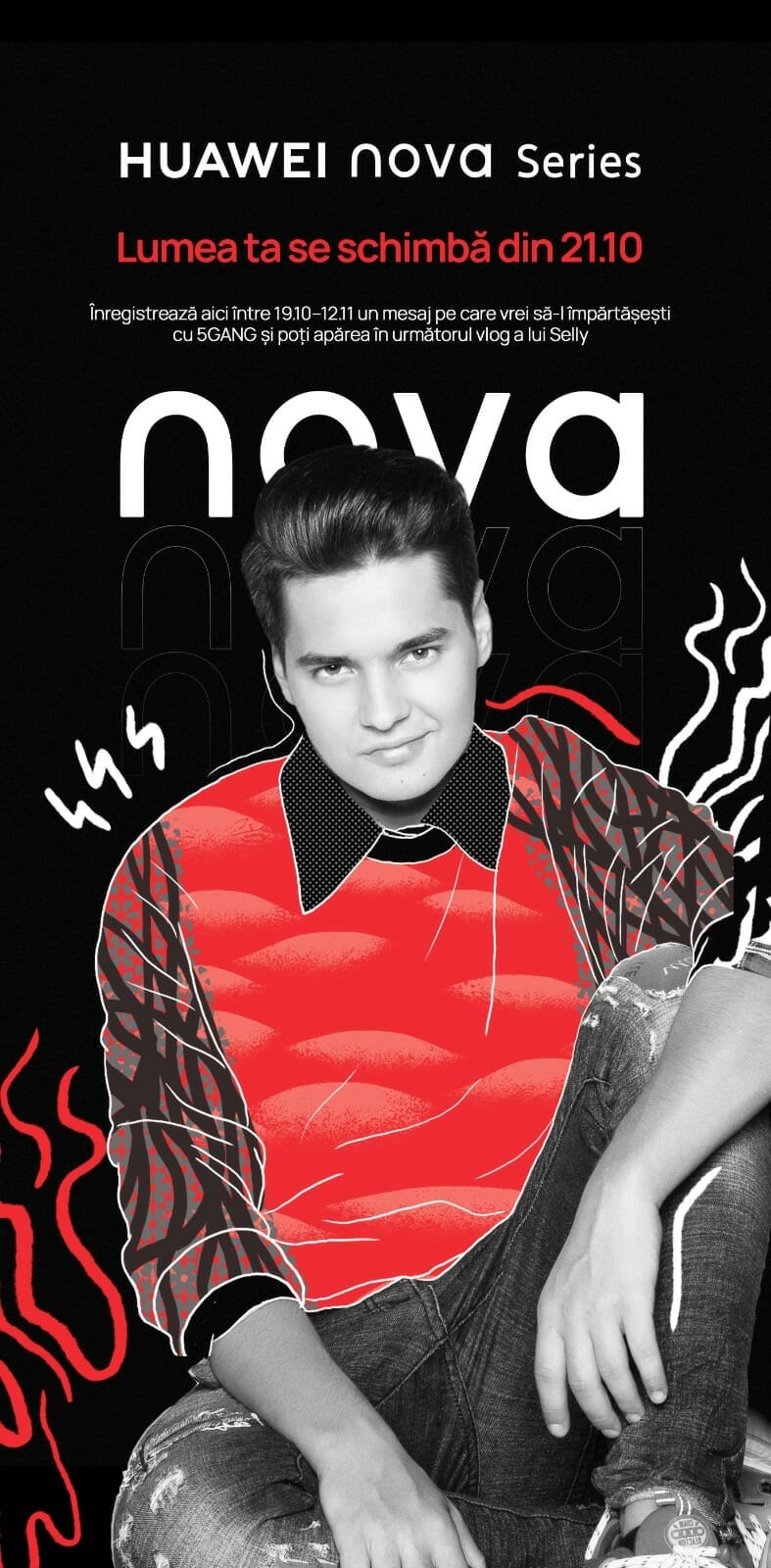 Pentru cei care nu știu încă, trupa 5GANG a anunțat în urmă cu o lună că la sfârșitul acestui an proiectul va lua sfârșit. Selly și Huawei au decis să marcheze momentul și să surprindă emoția vie a fanilor prin lentilele noului HUAWEI Nova. Cu ajutorul reprezentanților Huawei prezenți la locațiile menționate mai sus de luni până joi în intervalul 17:30 – 21:30, vinerea între 13:30-21:30, iar sâmbăta și duminica, între orele 11:00 -19:00, fanii vor putea înregistra un mesaj video, care apoi va fi trimis direct către Selly. Membrii trupei vor alege cele mai emoționante mesaje, care ulterior vor apărea în noul vlog al lui Selly.